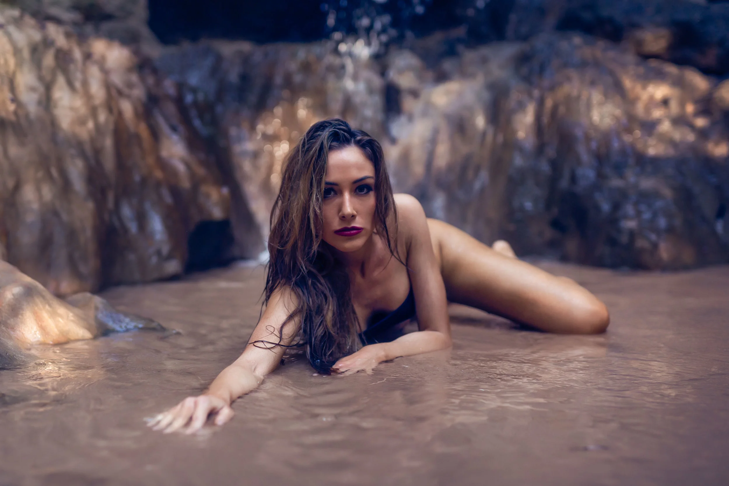 Recently we had way too much fun for this exciting outdoor shoot in these gorgeous waterfalls! We have worked with Miss D on several projects and know that she is an amazing model up for anything - even a high fashion boudoir & bikini shoot in a chilly waterfall! Miss D is breathtaking in these photos and our